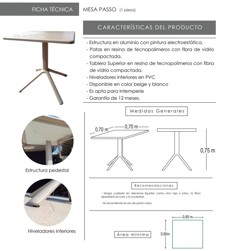 Nuestra línea de mesas para exteriores son ideales para el sector comercial e institucional por sus propiedades de alta resistencia. La superficie está compuesta por tecnopolímeros. El tubo está hecho en aluminio con pintura electrostática, y las patas están elaboradas en resina compacta. La superficie tiene un diseño en forma de rombos. Las patas vienen con niveladores en PVC para equilibrar superficies inestables.