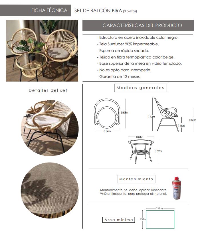 Mesa: 64cm x 48cm (diámetro x alto)