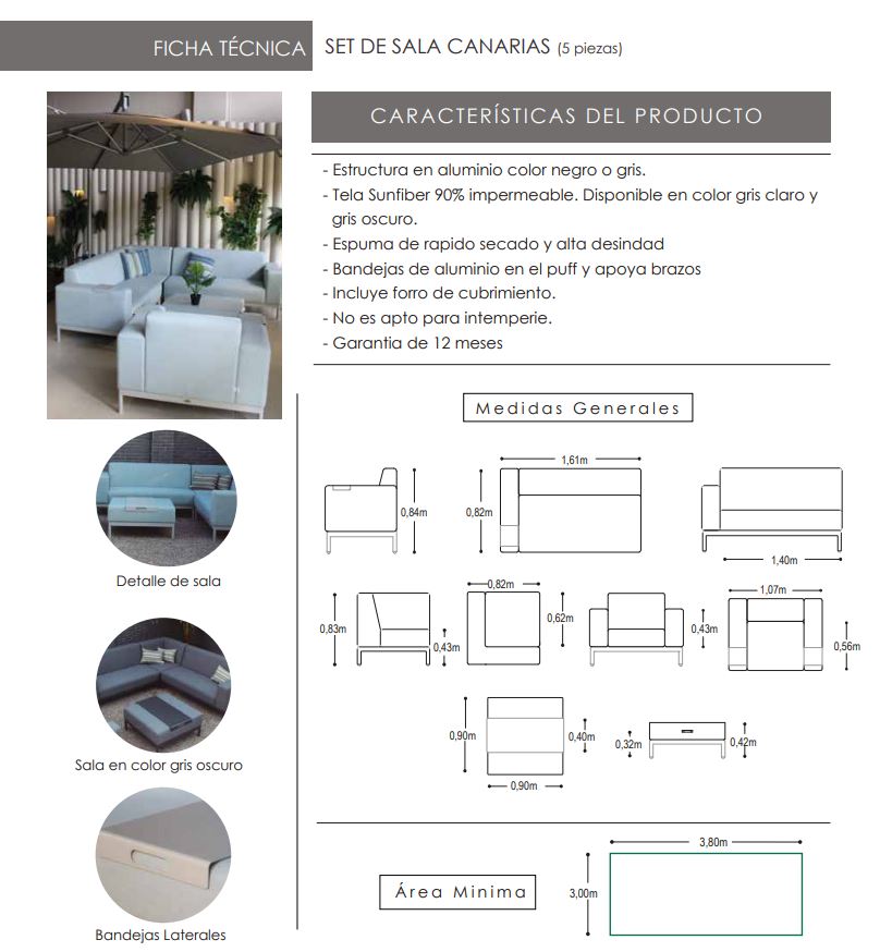 Aluminio con pintura en polvo, Tela Sunfiber.