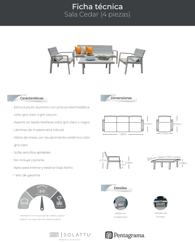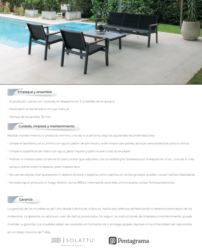 Aunque este set está diseñado para exteriores, se recomienda mantenerlo bajo techo para prevenir un deterioro prematuro.