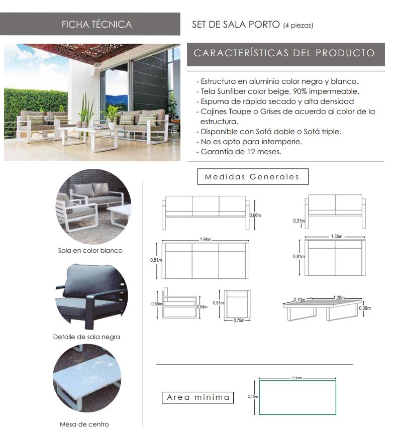 Aluminio con pintura en polvo, Tela Sunfiber.